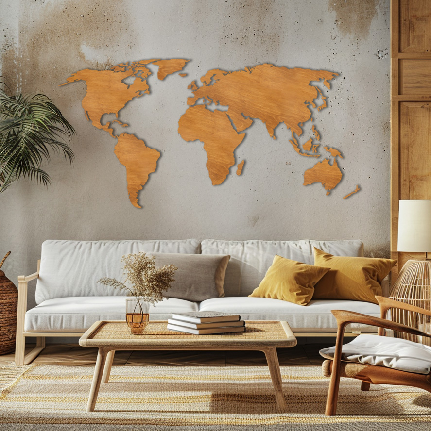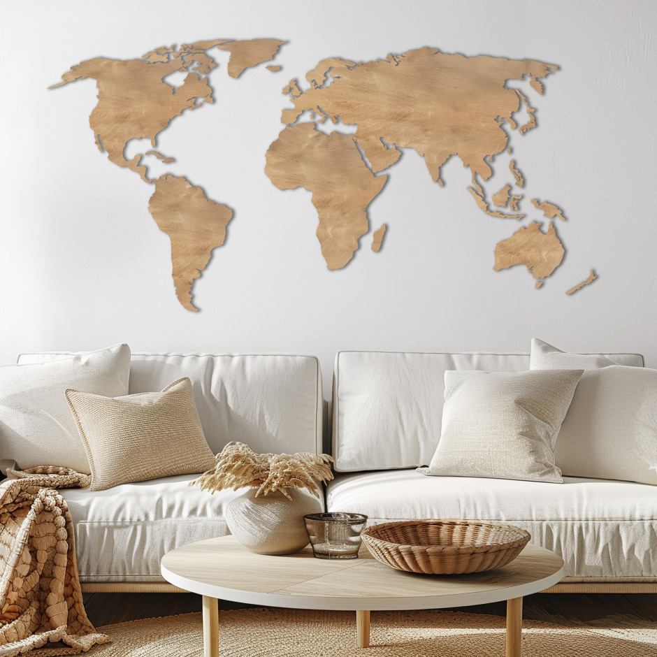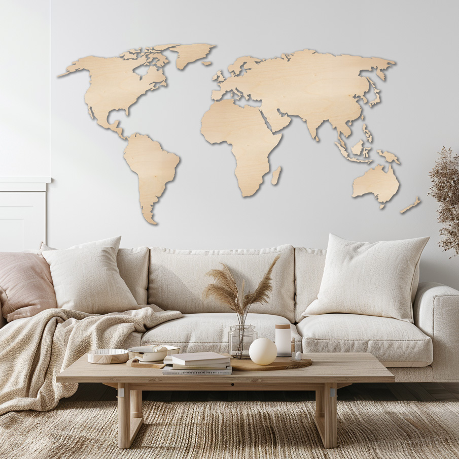 Mapa świata na ścianę – stylowy i nowoczesny dodatek, który nada charakter każdemu wnętrzu. Wykonana z wysokiej jakości drewna, z dbałością o najmniejsze detale, doskonale sprawdzi się jako dekoracja salonu, biura, sypialni czy pokoju podróżnika. Nasze mapy dostępne są w różnych rozmiarach i kolorach, dzięki czemu dopasujesz je do swojego stylu. Każdy element jest precyzyjnie wycinany i łatwy w montażu. Oferujemy mapy z tradycyjnym montażem na klej a także montażem magnetycznym, który zdecydowanie ułatwia późniejsze remonty w pomieszczeniu z mapą. Drewniana mapa świata na ścianę to nie tylko ozdoba, ale także inspiracja do planowania kolejnych podróży! Dodaj wyjątkowy akcent do swojego wnętrza i zamów swoją drewnianą mapę już dziś!